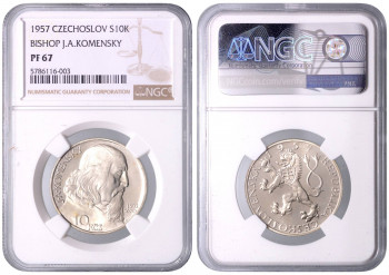 10 Kčs 10. Výročí osvobození Československa, 1955, Kremnica. MCH CSR2P-011 PROOF , NGC PF 67 CAMEO