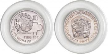 10 Kčs Velká Morava, 1966, 12g, Kremnica. MCH CSSRP-004 PROOF