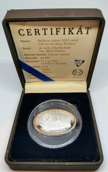 ČM Ag medaile/mince 2012 centů 1 OZ 100 let od zkázy TITANICU