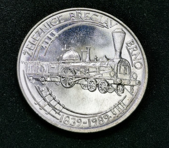 50 Kčs 1989- Železnice Břeclav - Brno, 27mm, 7g, 500/1000 Stav 0/0 - Plastová ETUE