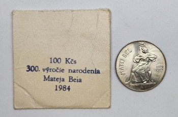 100 Kčs 1984 - Matej Bel, 29mm, 9g, 500/1000 s původním přebalem