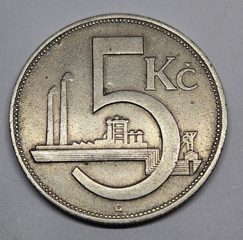 5 Koruna 1927 - vzácný ročník! 5 Koruna 1927, 9,76 g, průměr 30 mm materiál Cu/Ni, autor O.Guttfreund.