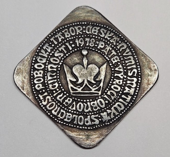 5. výročí obnovení činnosti ČNS Tábor 1978, klipa 30x30 mm., punc Ag pěkná patina