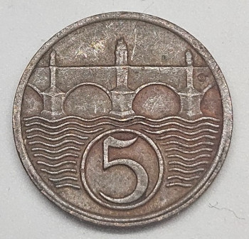 5 haléř 1938 - Cu/Zn, 1,6g, 16mm