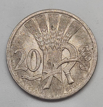 20 haléř 1938 - Cu/Zn, 3,33g, 20mm