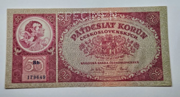 50 Kčs 1929 - UNC - SPECIMEN série Bp