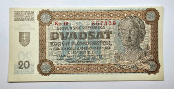20 Korun Slovenských 1942 -UNC - 1/1 STAV Série Ke Krásný stav - lehce růžky akorát.