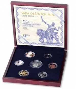 Sada oběžných mincí 2013 - PROOF - dřevěná ETUE - 20 let výročí ČNB a České měny