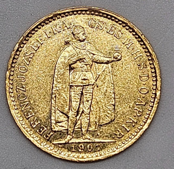 10 Koruna 1907 K.B. Kremnica Uherská ražba - Au/Zlato 900/1000, 19mm, 3,387g (2)