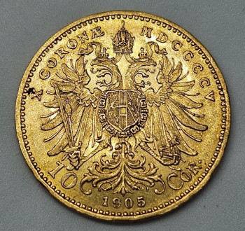10 Koruna 1911 K.B. Kremnica Uherská ražba - Au/Zlato 900/1000, 19mm, 3,387g