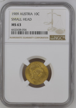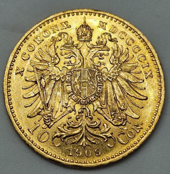 10 Koruna 1909 B.Z. - Marschall - Malá Hlava - NGC MS 63 Rakouská ražba - Au/Zlato 900/1000, 19mm, 3,387g
