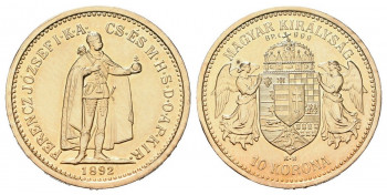 10 Koruna 1892 K.B. - Kremnica - NGC MS 62 Uherská ražba- první ročník - Au/Zlato 900/1000, 19mm, 3,387g