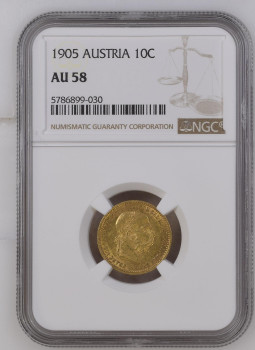 10 Koruna 1906 B.Z. - NGC MS 61 Rakouská ražba - Au/Zlato 900/1000, 19mm, 3,387g