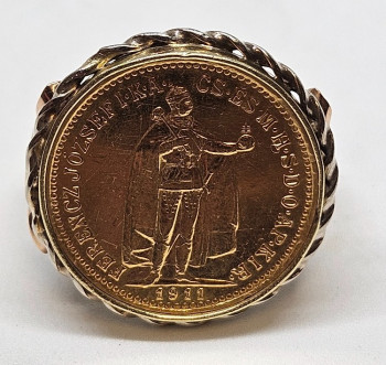 Prsten se zlatou Uherskou 10 Korunou 1911 K.B. - Kremnica