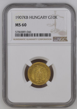 10 Koruna 1907 K.B. Kremnica NGC MS 60 Kremnica Uherská ražba - Au/Zlato 900/1000, 19mm, 3,387g