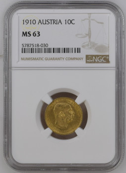 10 Koruna 1909 K.B. Kremnica NGC MS 62