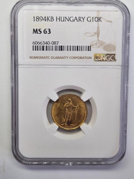 10 Koruna 1894 K.B. - Kremnica - NGC MS 63 Uherská ražba- Au/Zlato 900/1000, 19mm, 3,387g