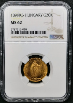 20 koruna 1899 K.B. - Uherská ražba NGC MS62 Uherská ražba Kremnica Au 900/1000, 21mm, 6,775g, hrana hladká s nápisem BIZALMAN AZ OSI ERÉNYBEN