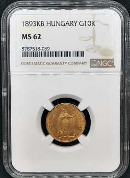10 Koruna 1893 K.B. - Kremnica - NGC MS 62 Uherská ražba- Au/Zlato 900/1000, 19mm, 3,387g
