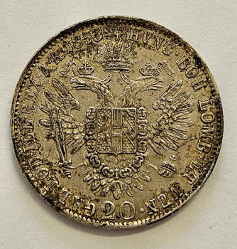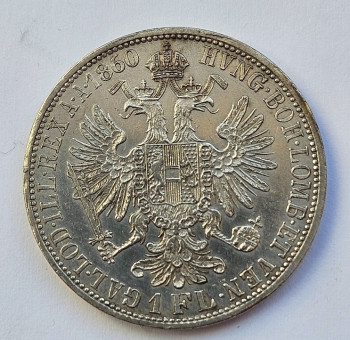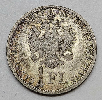 František Josef I. - 1/4 zlatník 1859 A - Ag 520/1000, 23mm, 5,342g hrana s nápisem VRIBVS VNITIS