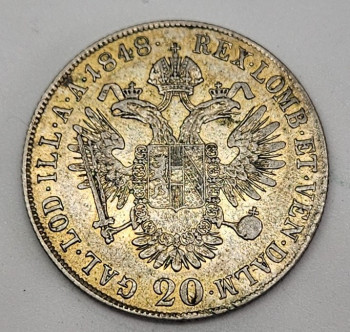 František I. 20 Krejcar 1848 C - Ag 0,583/1000, 27mm, cca 6,68g