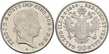 20 KREJCAR 1844 A 0/0 UNC/UNC TOP!! NGC MS64 (TOP POP) - KOEHLMOOS COLLECTION Ag 0,883, 30mm, 14,3g, hrana hladká s nápisem RECTA TVERI