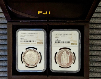 Sada Stříbrná 100 Koruna Stojící panovník BP 1907/2021 NGC PL 70 a Stříbrná 100 Koruna Korunovační BP 1907/2021 - NGC PL 70
