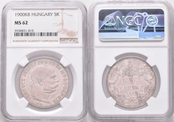 5 Koruna 1900 K.B. NGC MS 62 - TOP ZACHOVALOST Ag 900/1000, 36mm, 24g Jedná se o mimořádný exemplář s krásnou patinou!