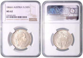 Zlatník 1866 A NGC MS 62 - Ag 900/1000, 12,35g, 29mm