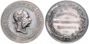 Stříbrná medaile Státní cena za zásluhy v oblasti zemědělství, varianta není uvedeno jméno medailéra (J. Tautenhayn), b. l., 34,8g, Wien. 40 mm, Ag 900/1000