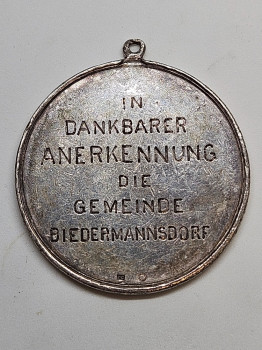 Ag medaile uznání obce Biedermannsdorf 1886 - 1888 42mm, puncováno,18,6g