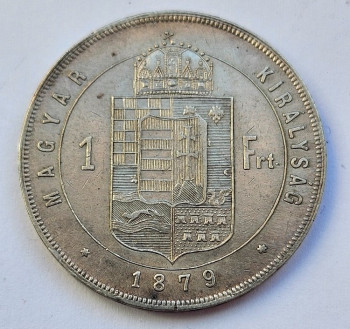 Zlatník/Forint 1879 - Ag 900/1000, 12,346g, 29mm, hrana s nápisem