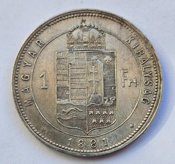 Zlatník/Forint 1881 - Ag 900/1000, 12,346g, 29mm, hrana s nápisem