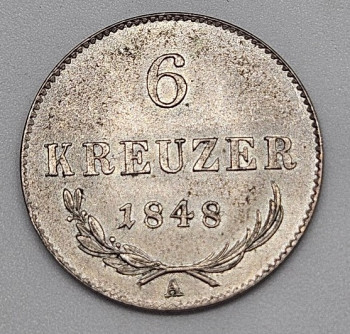 6 Krejcar 1848 A - Revoluce 1848 - 1849  Ag 0,438/1000, 2,23g, hrana hladká