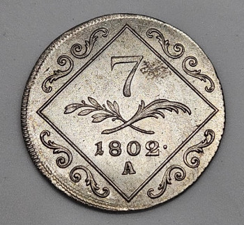 František II. - 7 Krejcar 1802 A - Ag 0,250/1000, 26mm, 4,68g, hrana s řetízkovým ornamentem