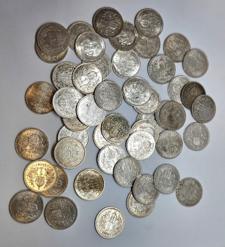Lot 50 kusů stříbrných FJI korun. Různé ročníky i stavy, pár kusů i Uherských. Každá mince 5g, 23mm, Ag 835/1000