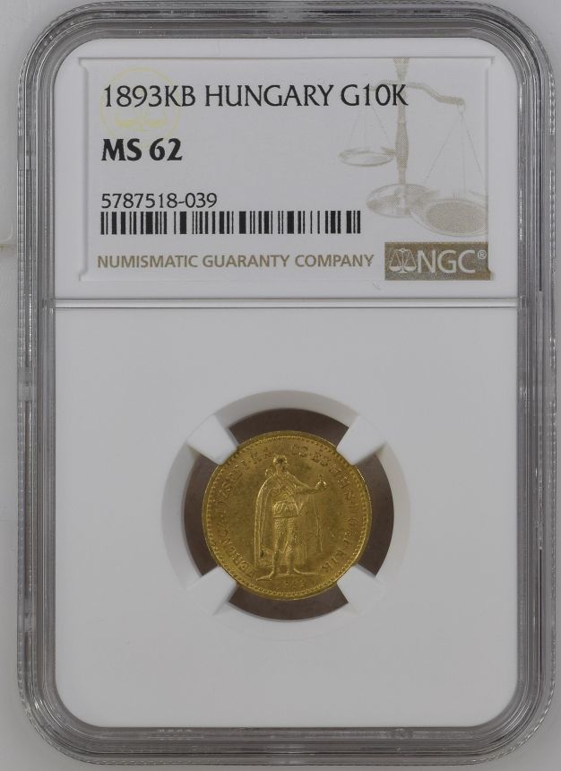 10 Koruna 1893 K.B. Kremnica NGC MS 62 Kremnica Uherská ražba - Au/Zlato 900/1000, 19mm, 3,387g