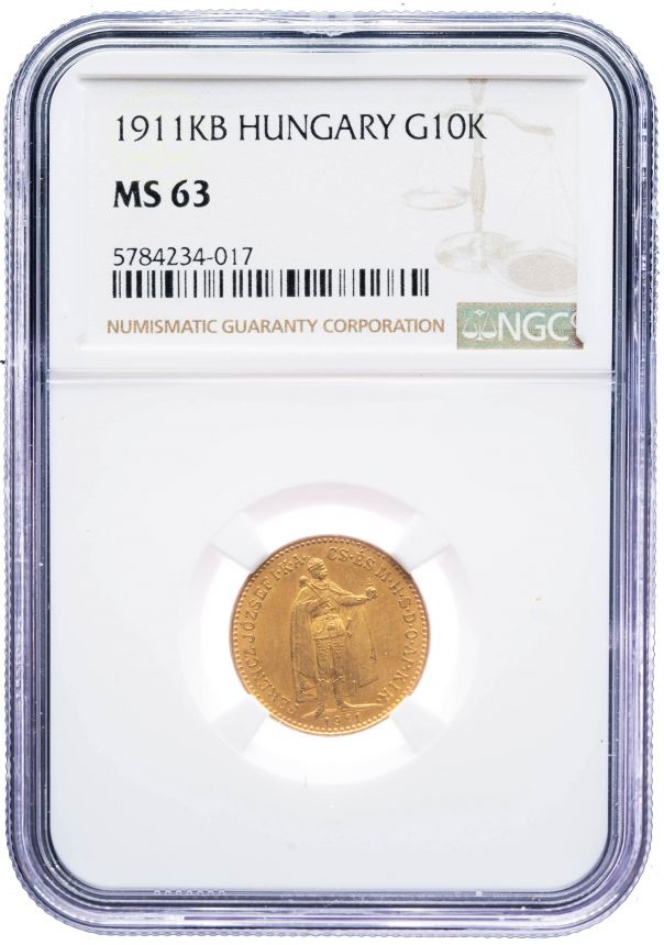 10 Koruna 1911 K.B. Kremnica NGC MS 63 Kremnica Uherská ražba - Au/Zlato 900/1000, 19mm, 3,387g