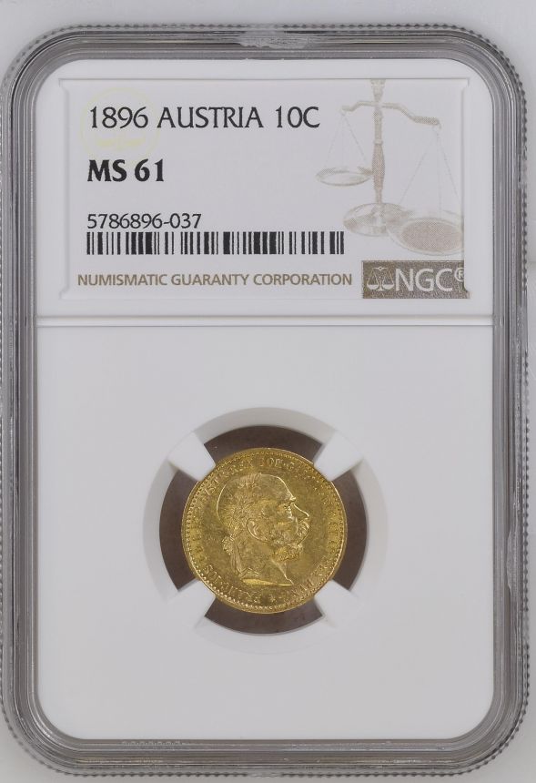 10 Koruna 1896 B.Z. - NGC MS 61 Rakouská ražba - Au/Zlato 900/1000, 19mm, 3,387g