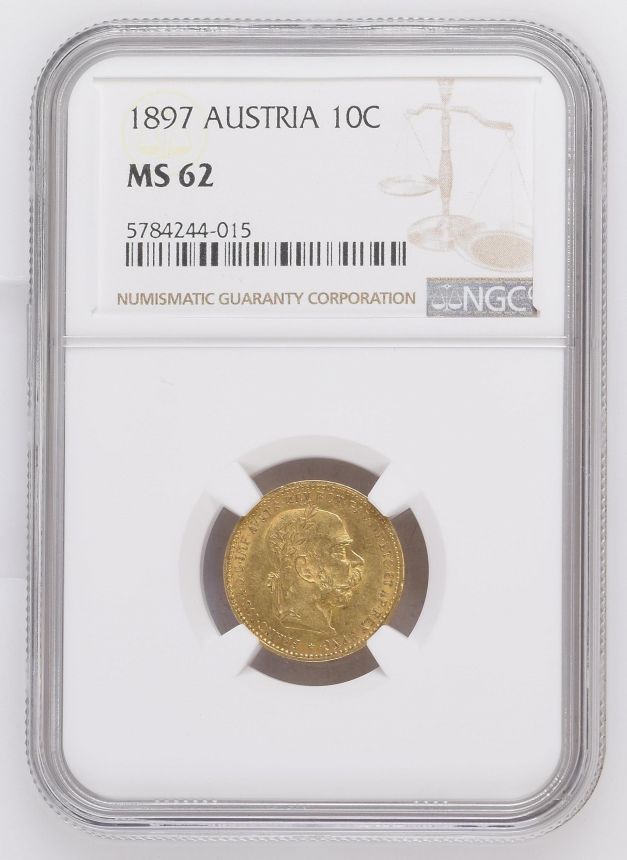 10 Koruna 1897 B.Z. - NGC MS 62 Rakouská ražba - Au/Zlato 900/1000, 19mm, 3,387g
