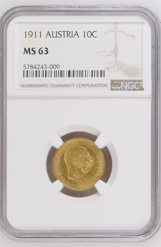 10 Koruna 1911 B.Z. - NGC MS 63 Rakouská ražba - Au/Zlato 900/1000, 19mm, 3,387g