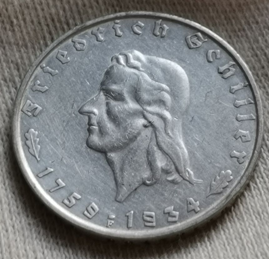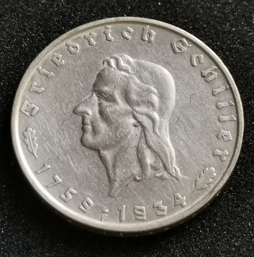 2 Reichsmarka 1934 F - 175. narozeniny FRIEDRICHA SCHILLERA