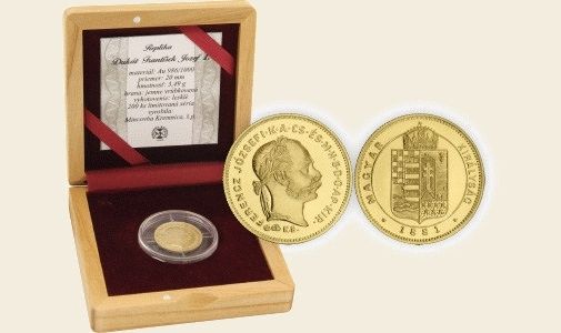 Pamětní zlatá replika mince 1 dukát 1881 K.B. František Josef I.