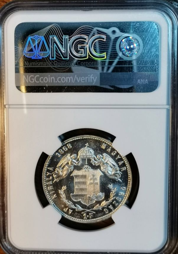 1 Forint 1868 K.B. - Andělíčkový Novoražba ARTEX ROZETA NGC PF67