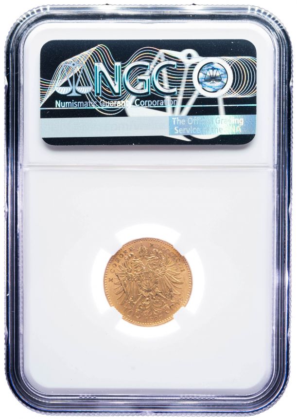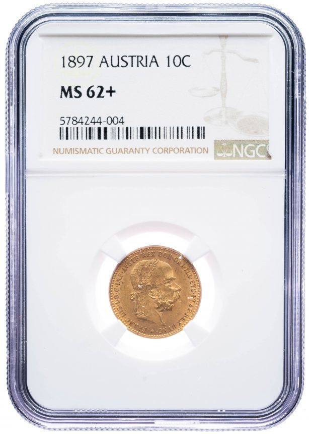 10 Koruna 1897 B.Z. - NGC MS 62+ Rakouská ražba - Au/Zlato 900/1000, 19mm, 3,387g