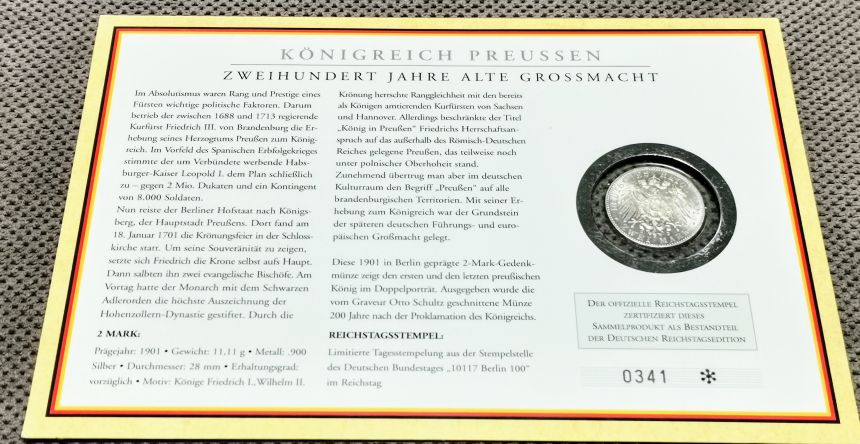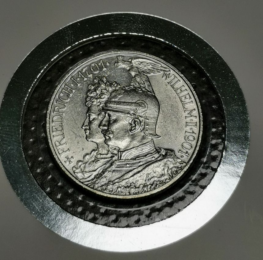 Limitovaná edice - Raritní obsahující Výroční 2 Marku Pruskou 1901 A AG 0,900, 28mm, 11,111g