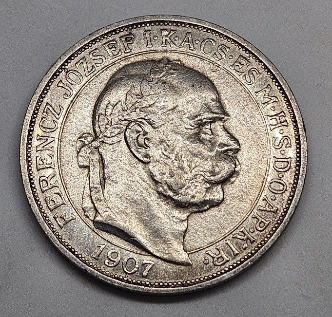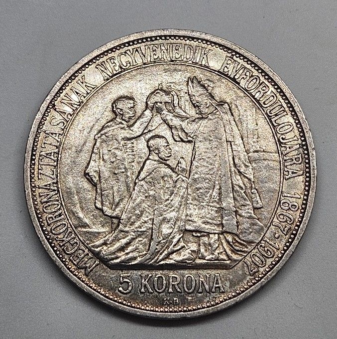 Korunovační 5 Koruna 1907 - 36mm, Ag 900/1000, 24 g (6)