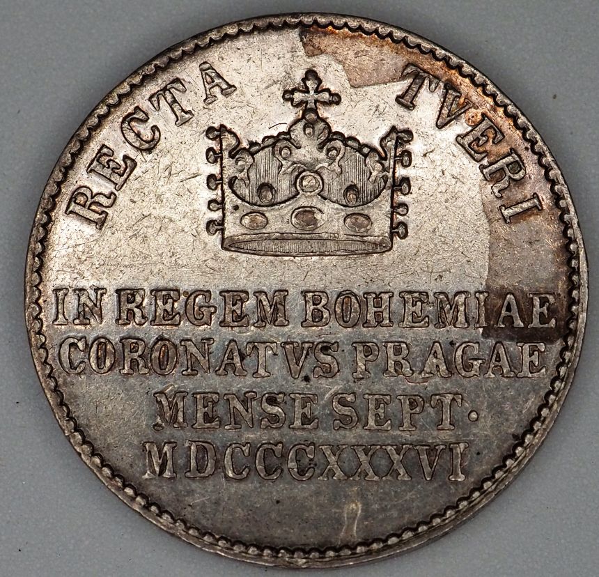 Velký žeton na českou korunovaci 7.9.1836 v Praze Ag 20 mm FERDINAND V.