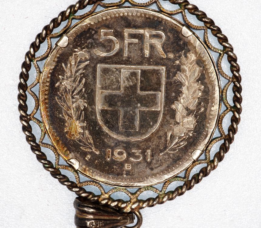 Ag mince na krk Švýcarský 5 Frank 1931 B - vzácný