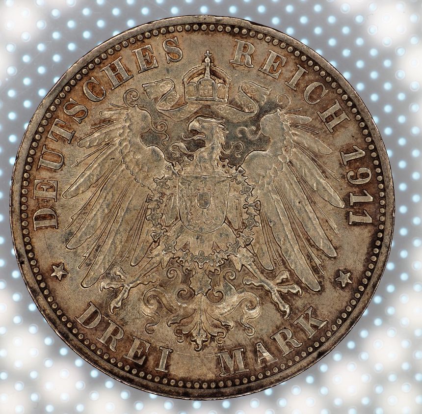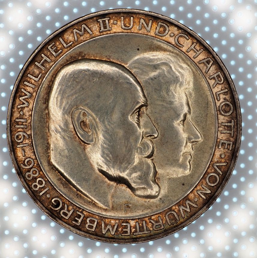 3 Marka Stříbrná Svatba 1911 F - WILHELM II a CHARLOTTE